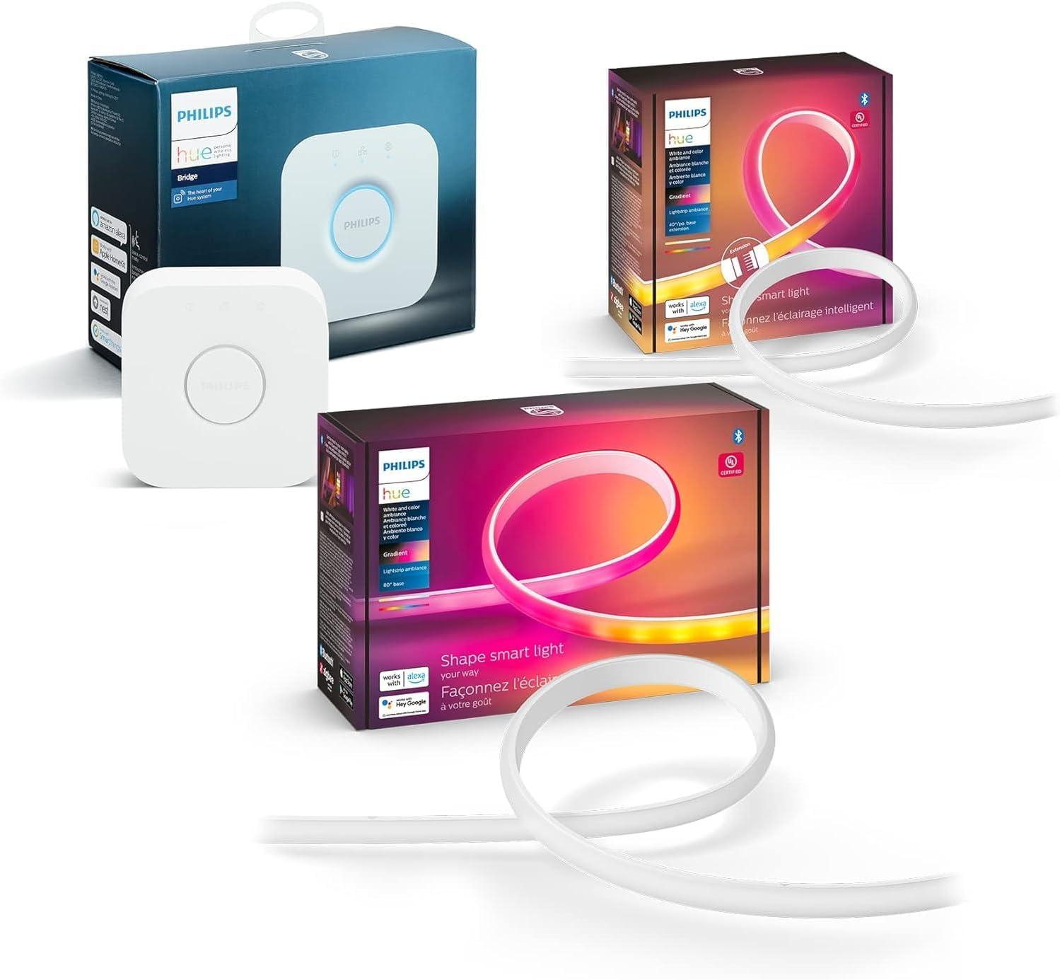 Philips Hue (1) 6-Foot Smart LED Light Strip Base Kit with (1) 3-Foot Light Strip Extension – Flowing Multicolor Effect – Control with Hue App – Works with Alexa, Google Assistant and Apple HomeKit(Gradient Color)