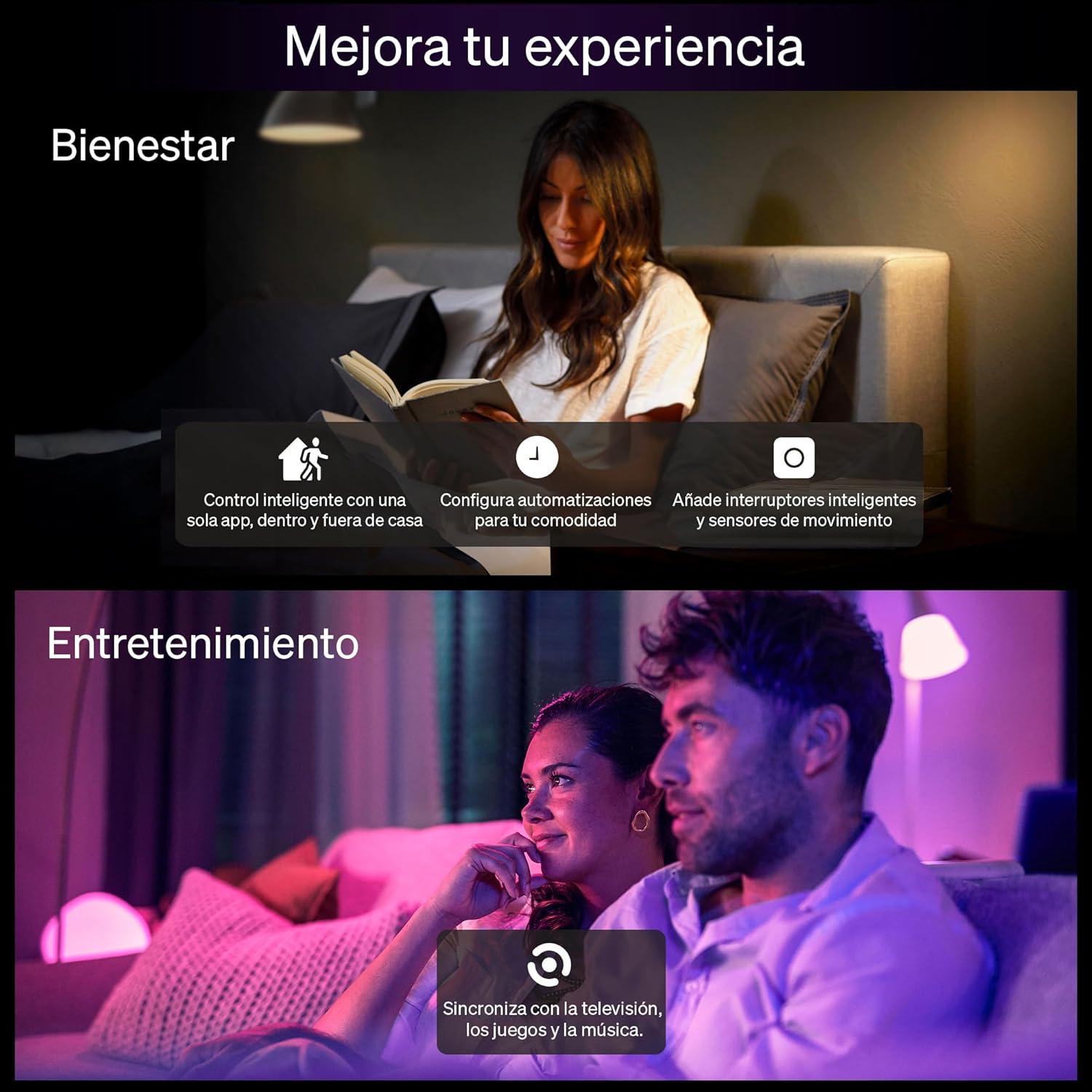 Philips Hue Essential Starter Kit: Bridge + 4 Essential E26 Smart Bulbs,White & Color Ambiance,2200K-6500K,Dimmable,Compatible with Alexa,Google,Samsung SmartThings,Apple Home