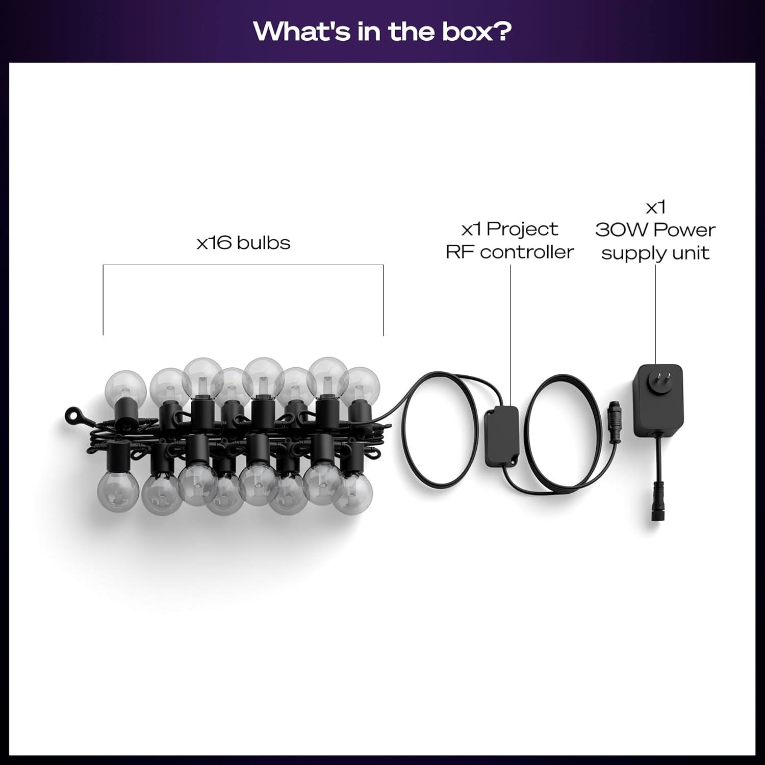 Philips Hue Festavia Globe Outdoor String Lights, White & Color Ambiance, 22ft,8 Bulbs, Dimmable, Control with Hue App or Voice, Bridge Required(45ft)
