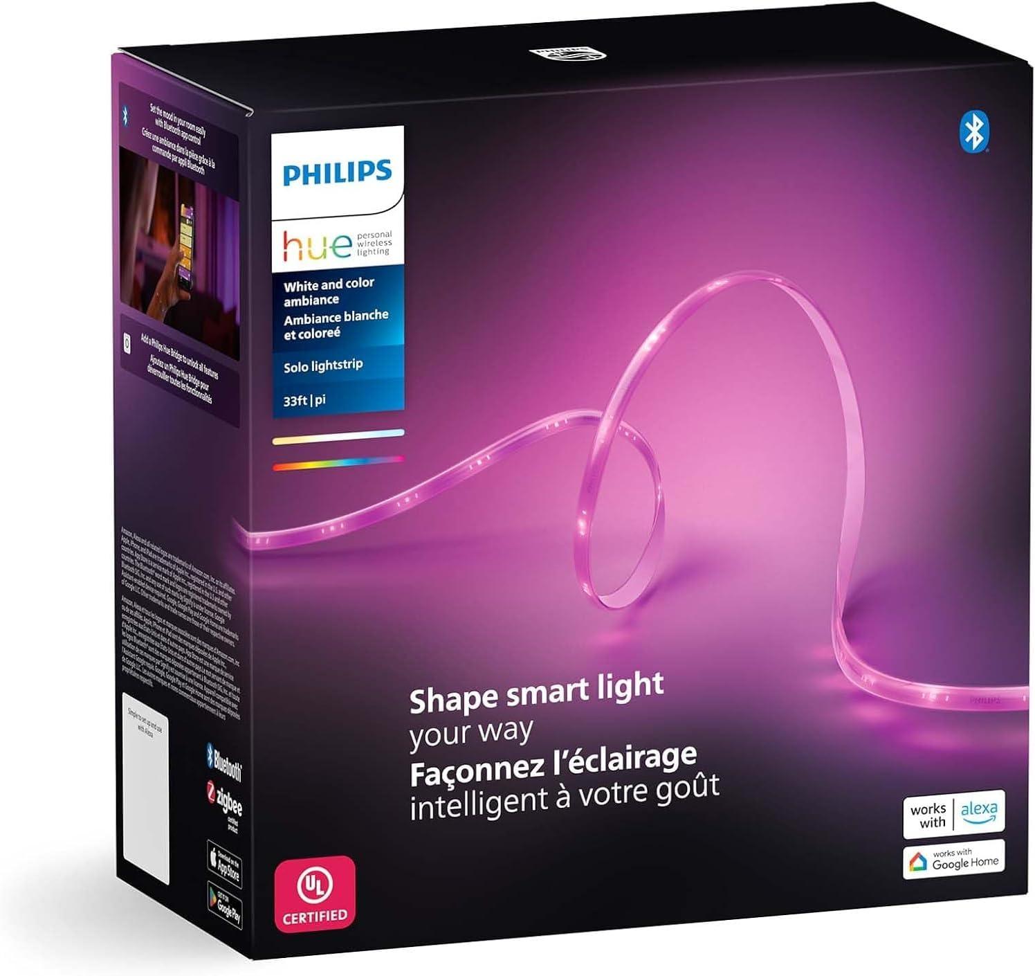 Philips Hue Indoor 33 Ft Smart LED Solo lightstrip Base Kit – 1 Pack – Control with Hue App – Compatible with Alexa, Google Assistant and Apple HomeKit(16 FT)