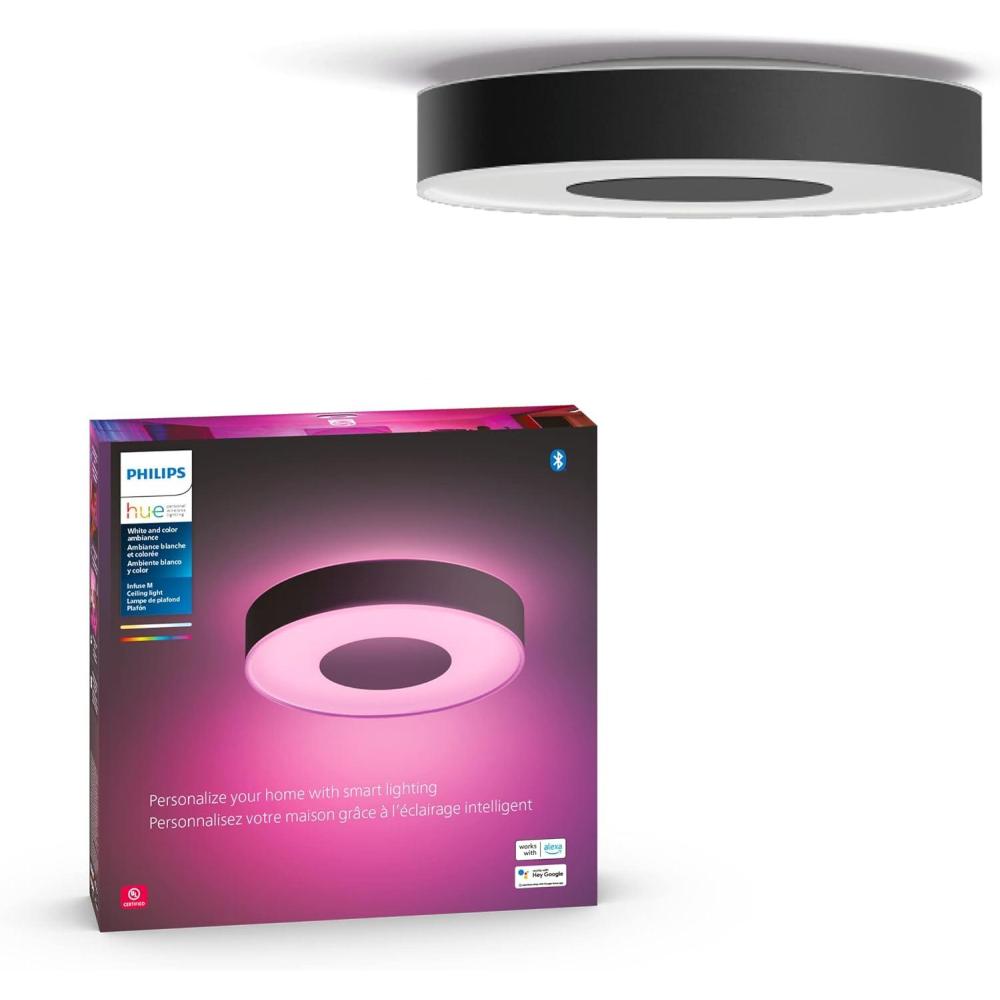 Philips Hue Infuse Medium Ceiling Lamp, Black – White and Color Ambiance Color-Changing Smart LED Light – 1 Pack – Control with Hue App – Compatible with Alexa, Google Assistant, and Apple Homekit(Black)