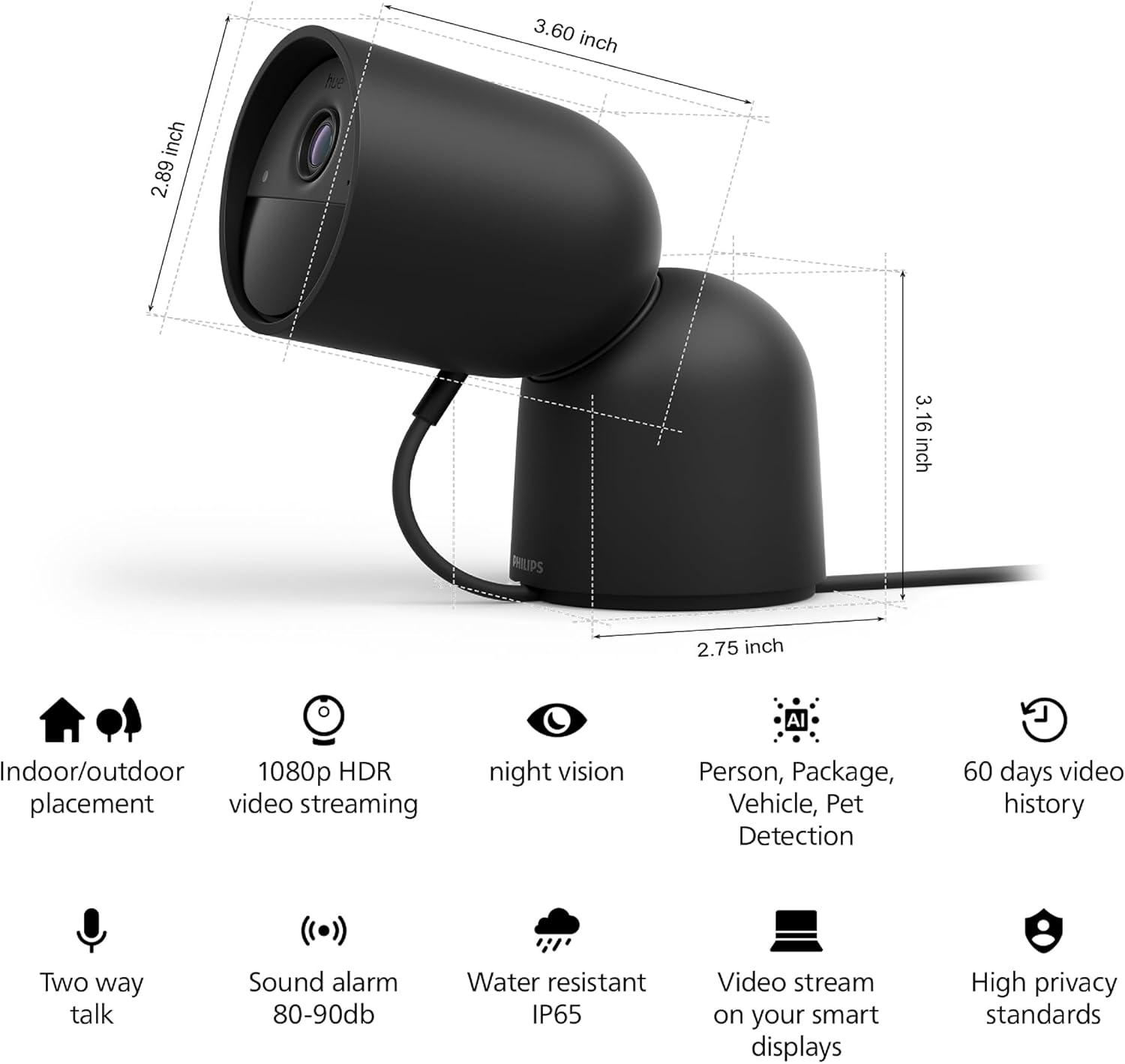 Philips Hue Secure Desktop Camera, 1080P Resolution, Notifications, Two-Way Audio, Seamless Integration, Compact Design, Desktop Stand, White, Free 24-Hour Video History(Black)