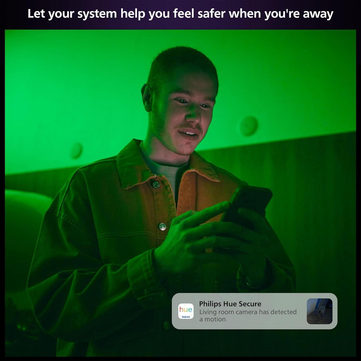 ONE APP, COMPLETE CONTROL: Control your Hue lights, cameras, sensors, and security notifications from a single app. The Hue app puts your entire smart home security system in the palm of your hand.