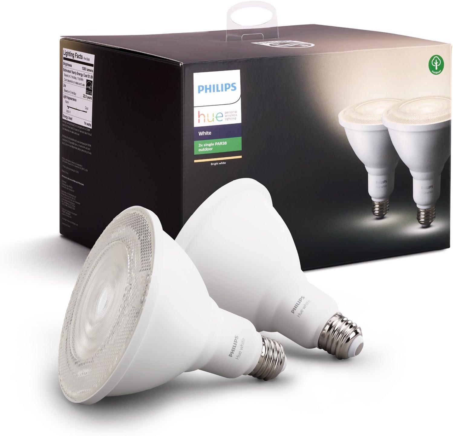 Philips Hue Smart 100W PAR38 LED Bulb – White and Color Ambiance Color-Changing Light – 1 Pack – 1300LM – E26 – Outdoor – Control with Hue App – Works with Alexa, Google Assistant and Apple Homekit(White)