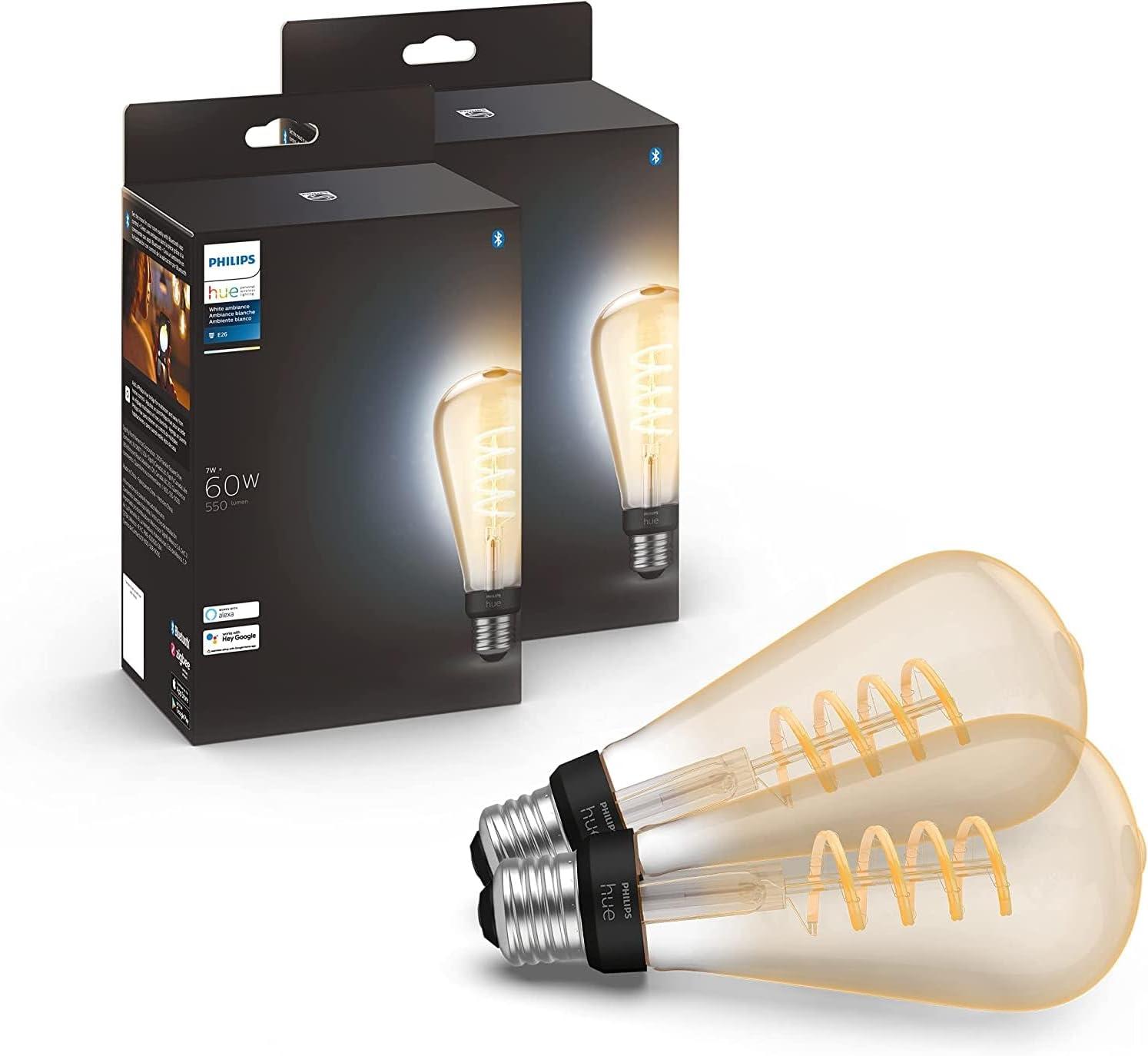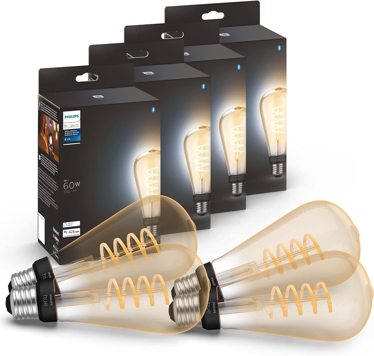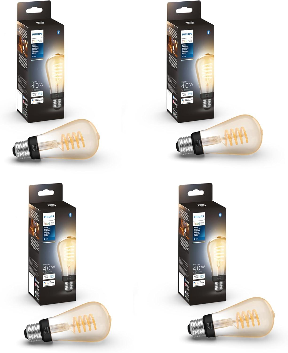 Philips Hue Smart 40W ST19 Filament LED Bulb – White Ambiance Warm-to-Cool White Light – 4 Pack – 550LM – E26 – Indoor – Control with Hue App – Works with Alexa, Google Assistant and Apple Homekit(White Ambiance)