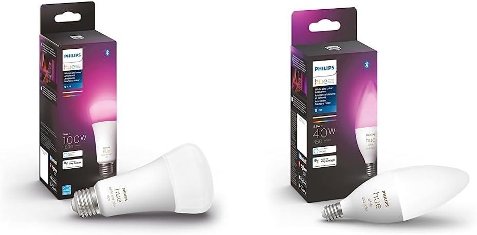 Philips Hue White and Color A21 High Lumen Smart Bulb, 1600 Lumens, 1 Bulb & White and Color Ambiance Smart LED Candle with E12 Candelabra Base – 1 Pack – Color Changing Light for Chandeliers(White & Color Ambiance)